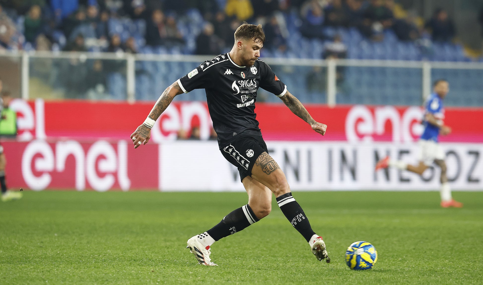 Elegant and identitarian, modern and innovative. The new Spezia Calcio Away Shirt is a tribute to the history and tradition of La Spezia. The black social color, combined with gold inserts, gives life to a classic design, which recalls the past, but at the same time renewed.