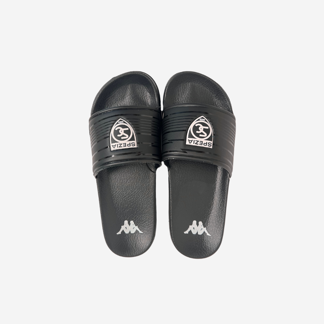On the footbed of the flip-flops you will find a graphic of the team, while on the lace is printed the distinctive Kappa lettering and the word Spezia.