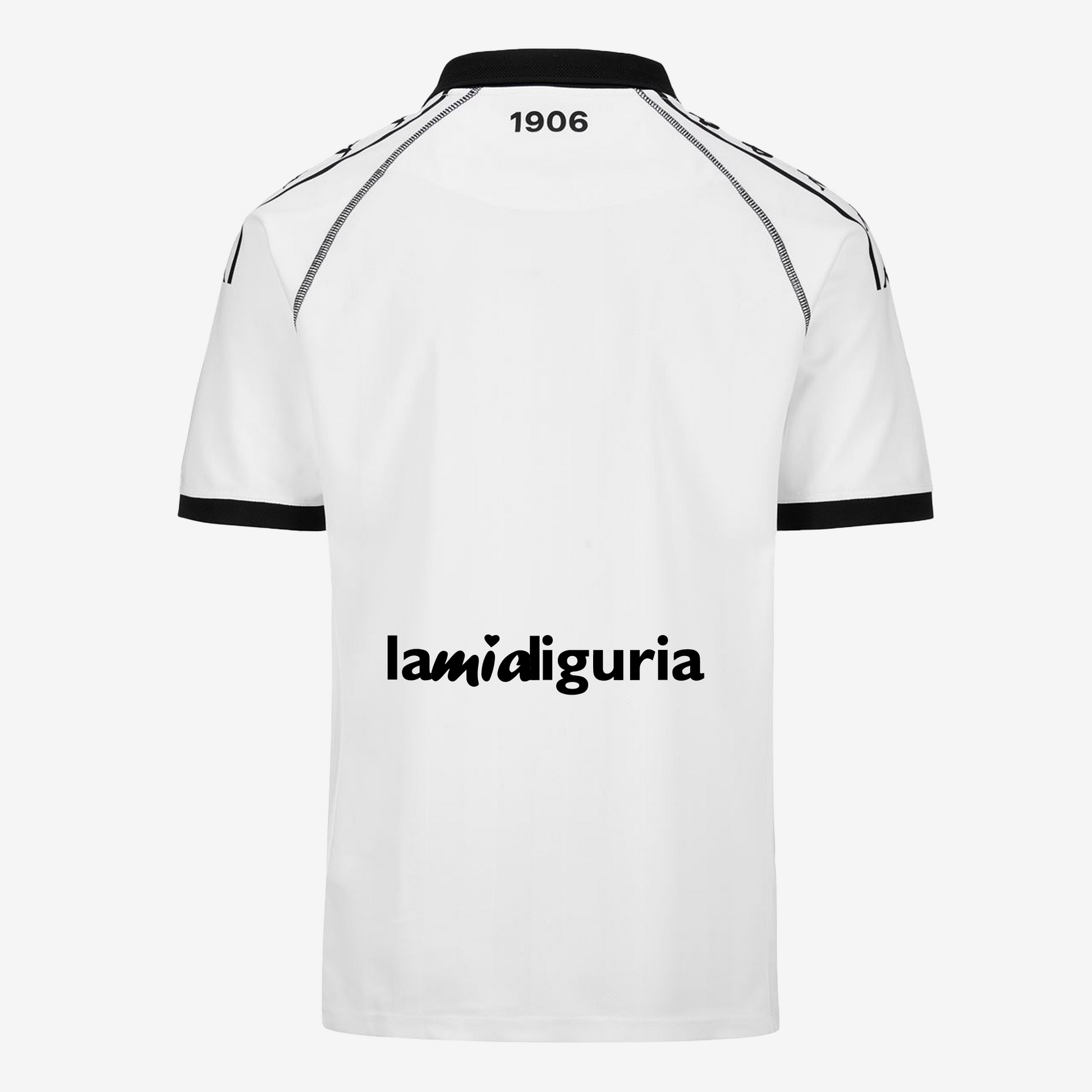The 1944 shield, placed in the center of the chest and made of silicone, is a reference to the glorious past of the Club, while on the back and inside of the neck there is a lettering that is a symbol of belonging. To embellish the shirt in its entirety, the new logo of Spezia Calcio, also made of silicone, and the Kappa logo, hot applied on the chest and sleeves.