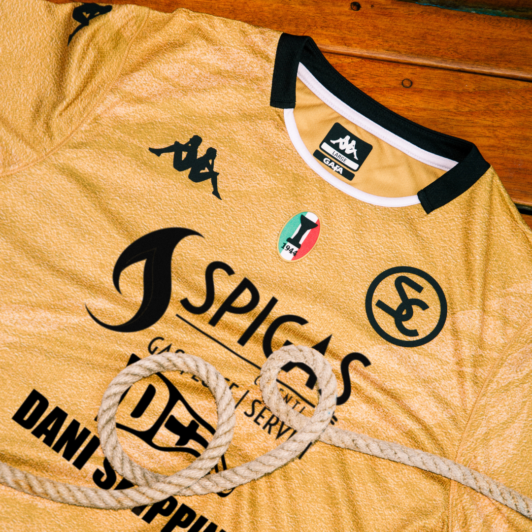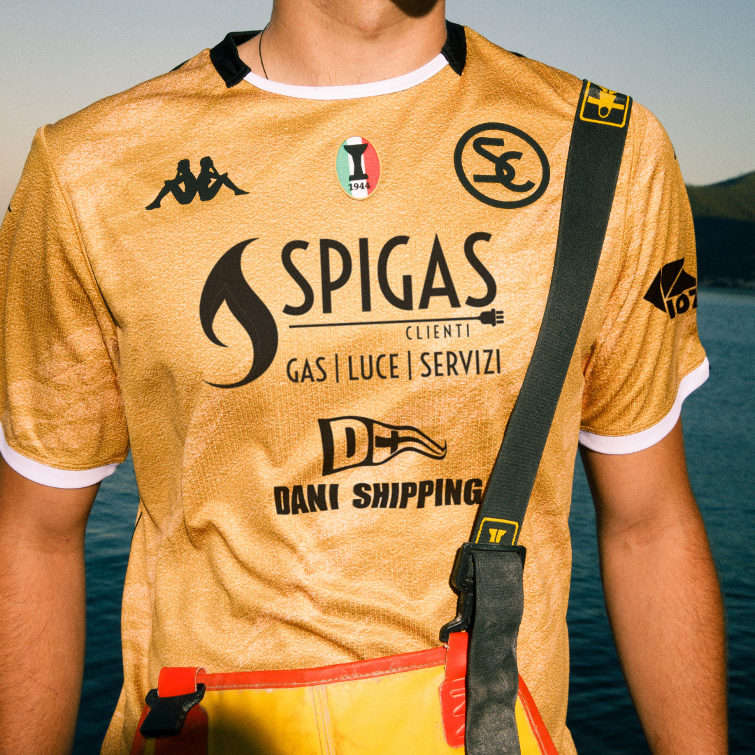 The 1944 shield, placed in the center of the chest and made of silicone, is a reference to the glorious past of the Club, while on the back and inside of the neck there is a lettering that is a symbol of belonging. To embellish the shirt in its entirety, the new logo of Spezia Calcio, also made of silicone, and the Kappa logo, hot applied on the chest and sleeves.