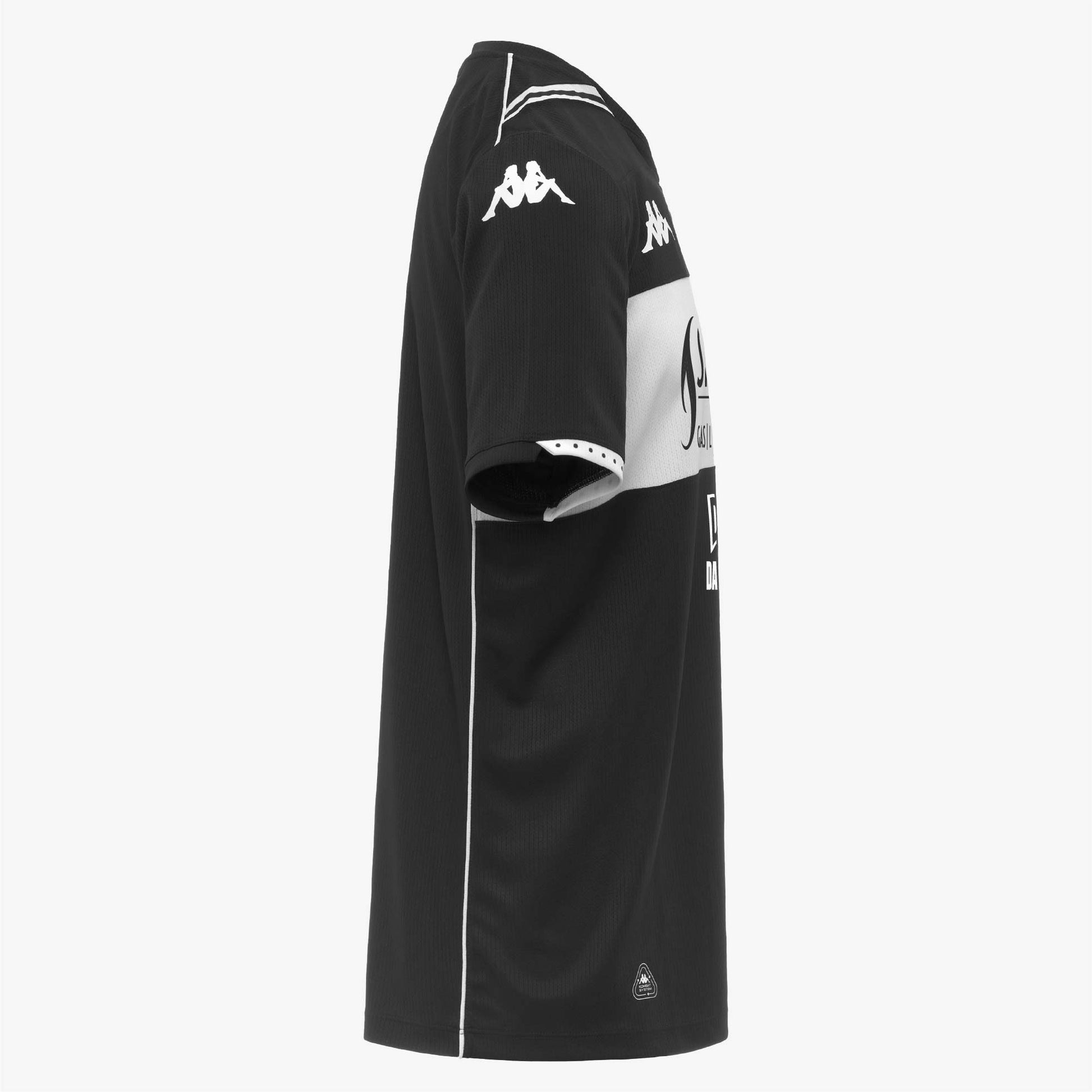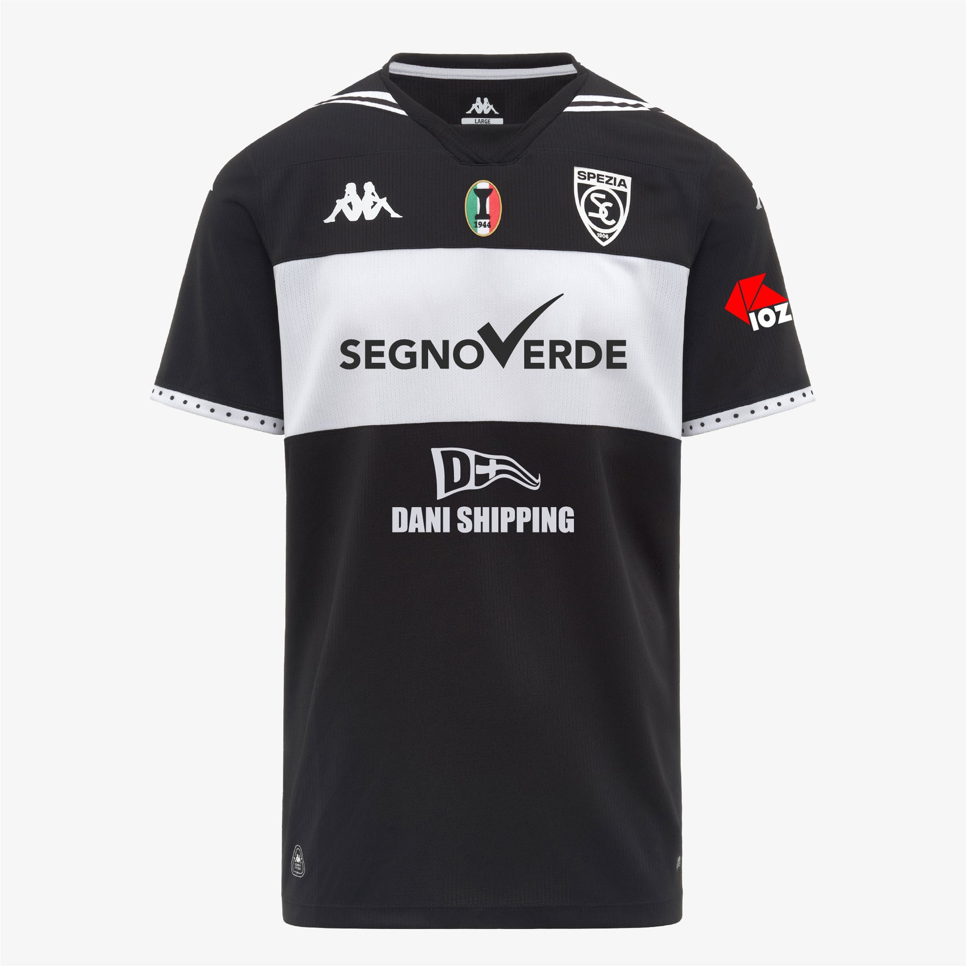 The 1944 shield, placed in the center of the chest and made of silicone, is a reference to the glorious past of the Club, while on the back and inside of the neck there is a lettering that is a symbol of belonging. To embellish the shirt in its entirety, the new logo of Spezia Calcio, also made of silicone, and the Kappa logo, hot applied on the chest and sleeves.