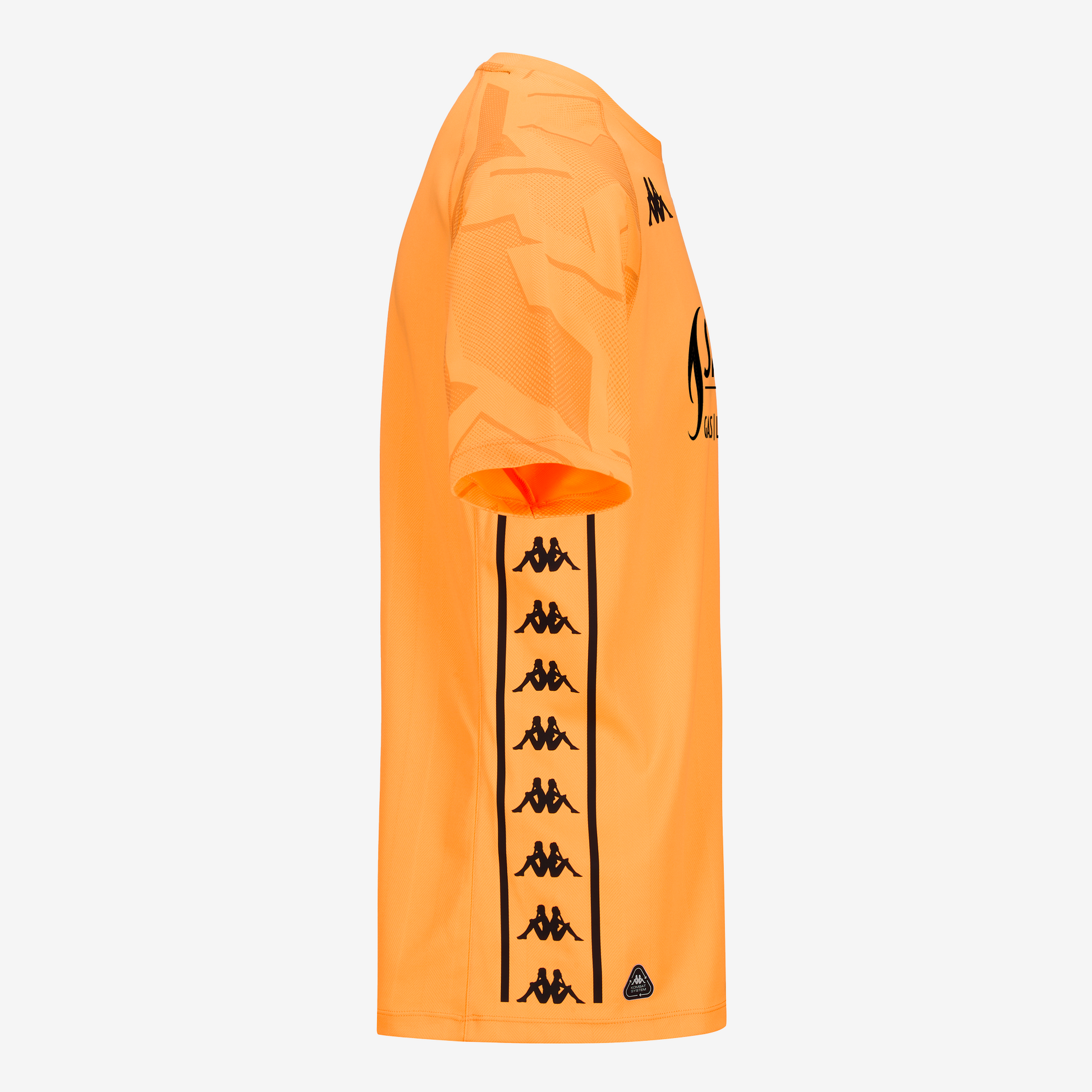 It features inserts on the sides and edges and the Kappa logo is heat-applied on the chest and sleeves.