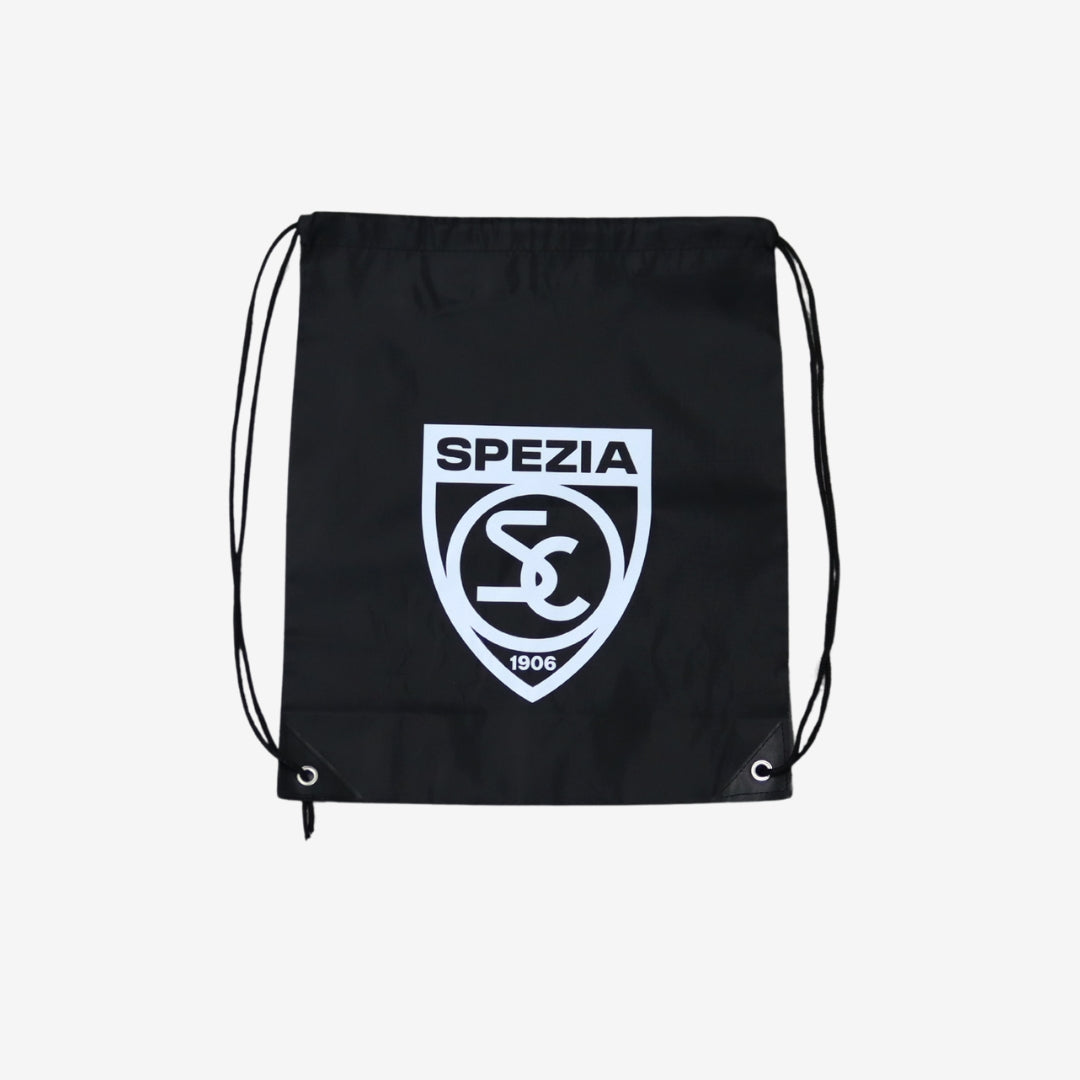 Features in white The Kappa logo and the Spezia Calcio logo.