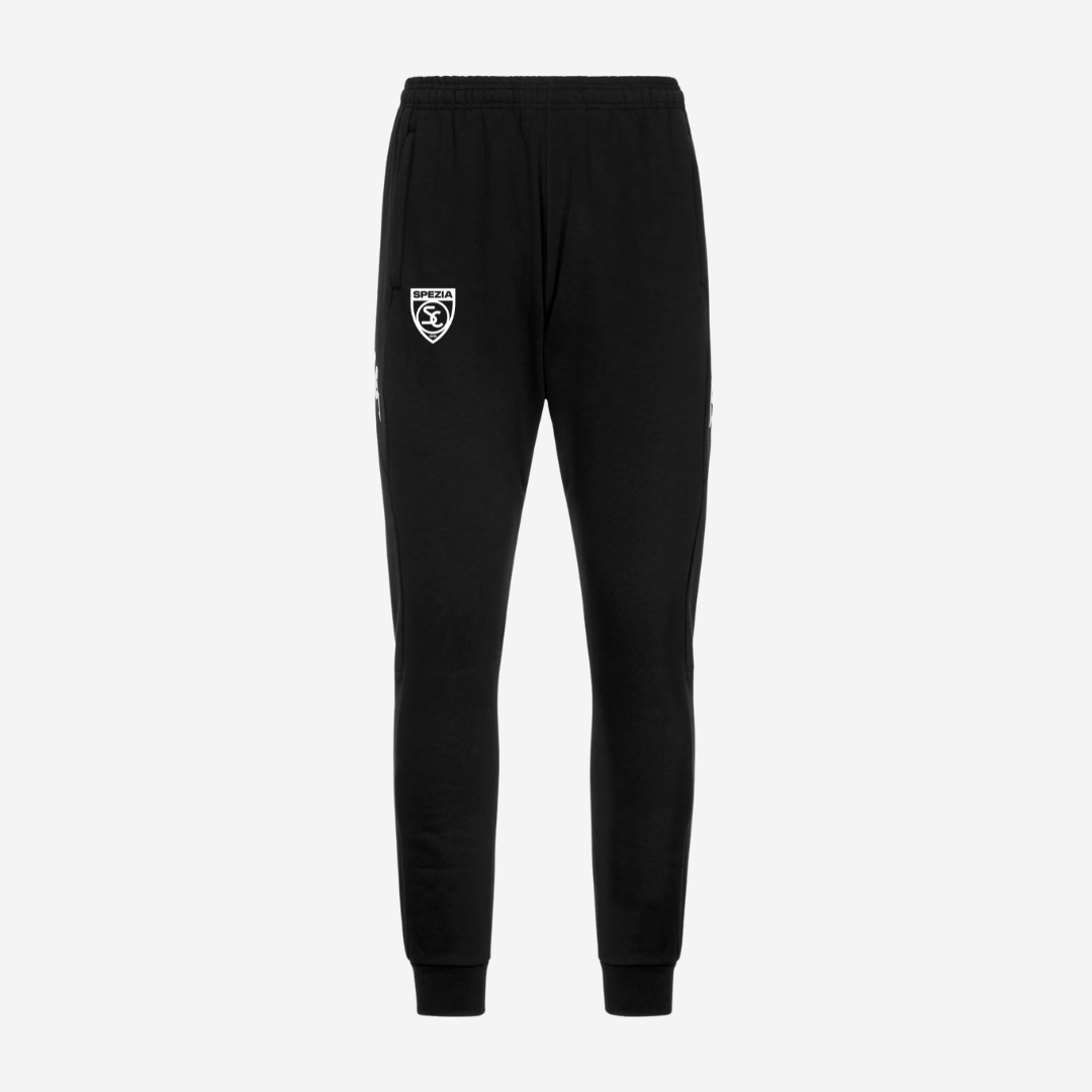 The Kappa logo is featured on the chest and gabardine shoulders, while the Spezia Calcio logo is embroidered on the chest. On the back is embroidered team lettering.