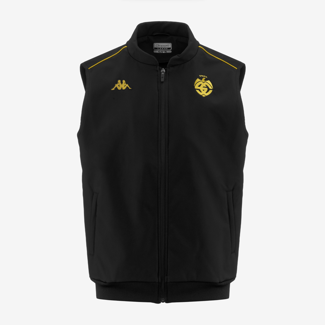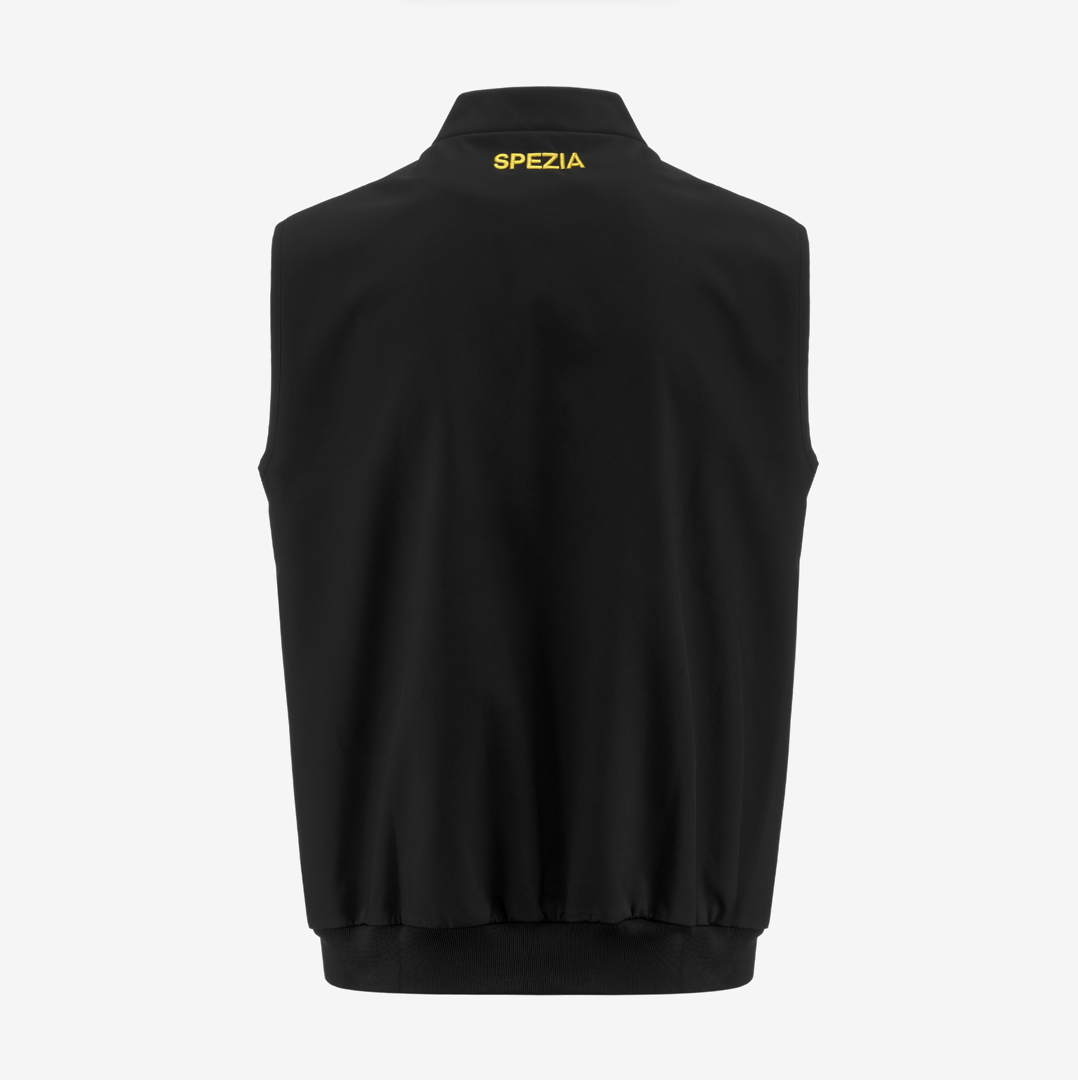 Official Spezia Calcio men's Black-Gold sleeveless representative jacket.
