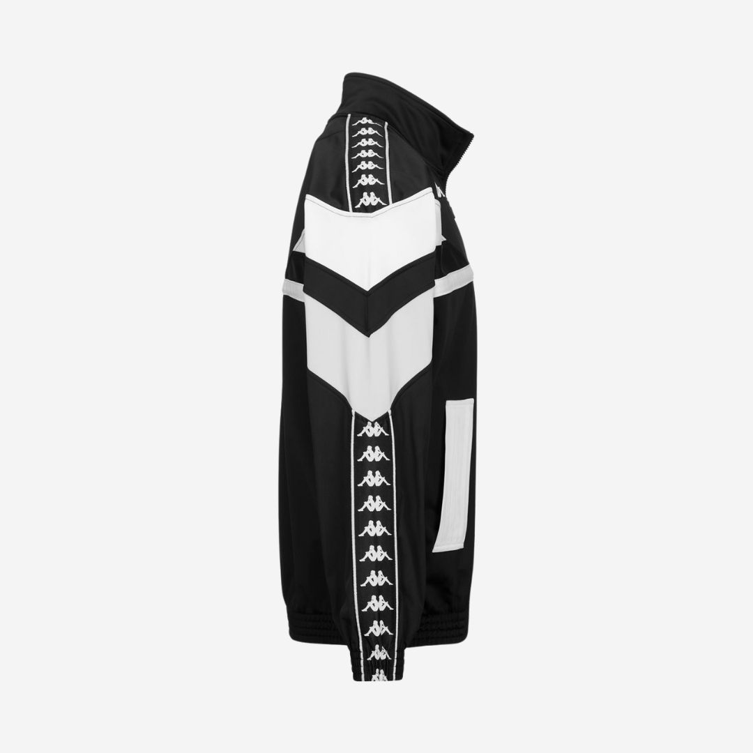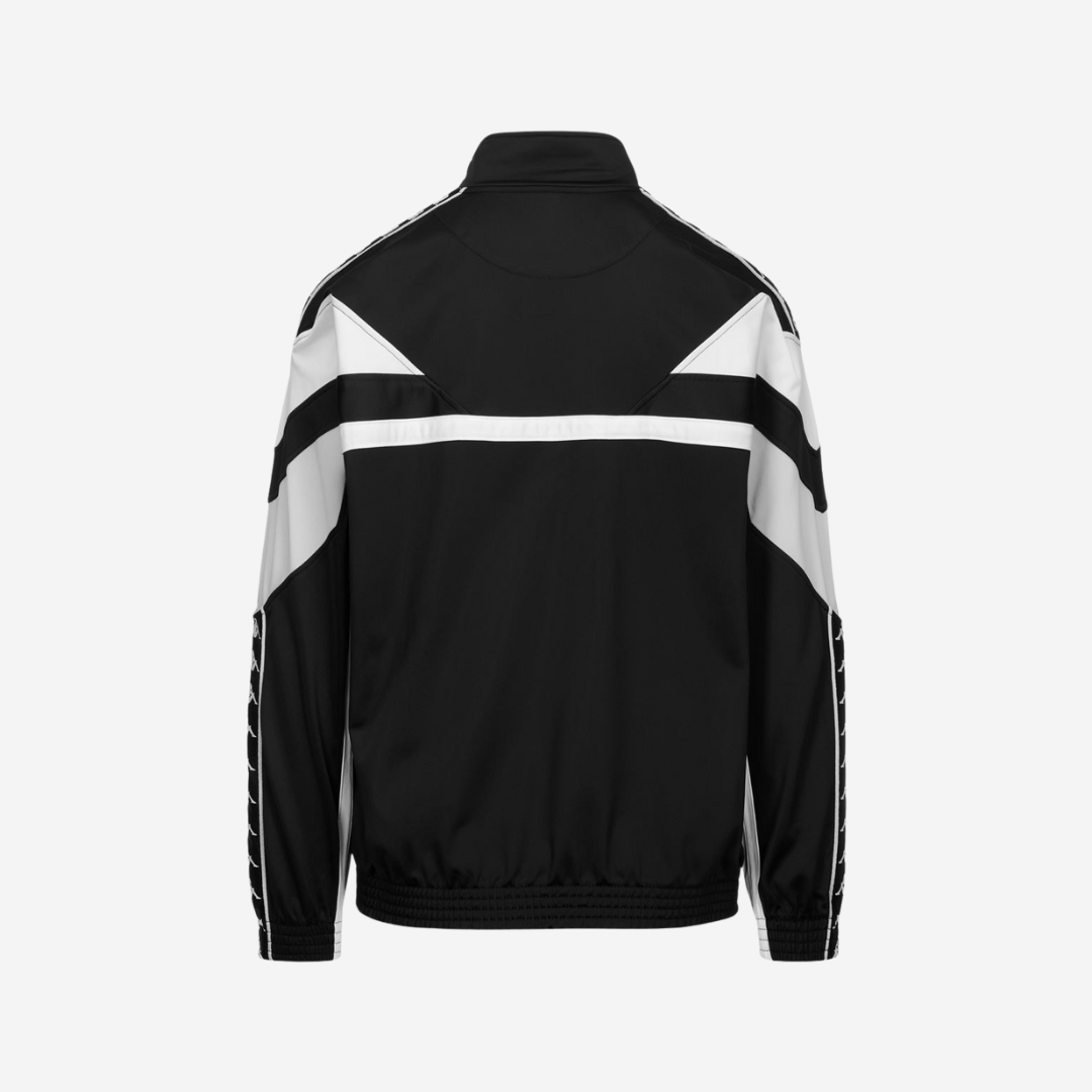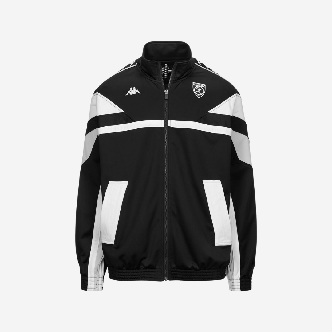 Sulla felpa è applicata una banda "Japan", mentre il logo Kappa è ricamato in gabardina e il logo dello Spezia Calcio è realizzato tramite ricamo diretto.