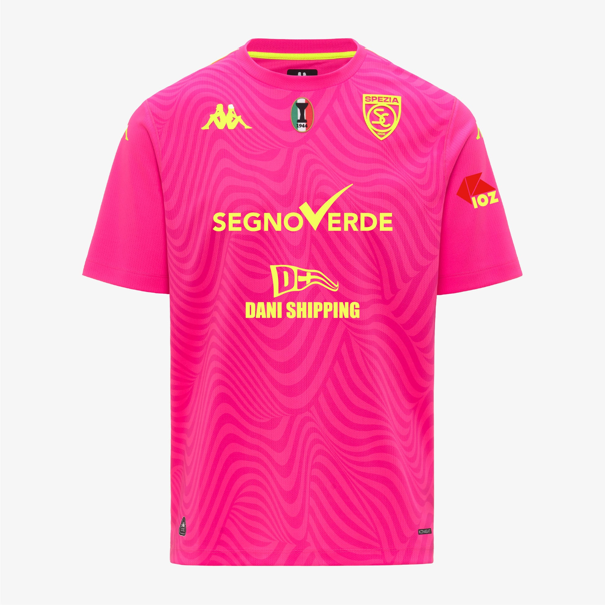 Maglia gioco KOMBAT™ GOALKEEPER 2026 da uomo in tessuto lavorato riciclato e con tecnologia HYDRO-WAY PROTECTION. REGULAR FIT. Manica corta, girocollo e grafica stampata sul fronte. Logo Omini sul petto e sulle maniche realizzati in transfer applicati a caldo. Logo Team sul petto realizzato in stampa ad alta densità.
